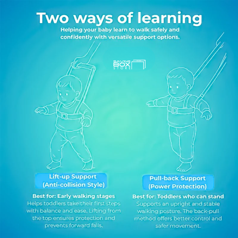 The walking belt features 360° rotatable handles that allow parents to guide their baby from any direction. This provides more flexibility and ease while walking.